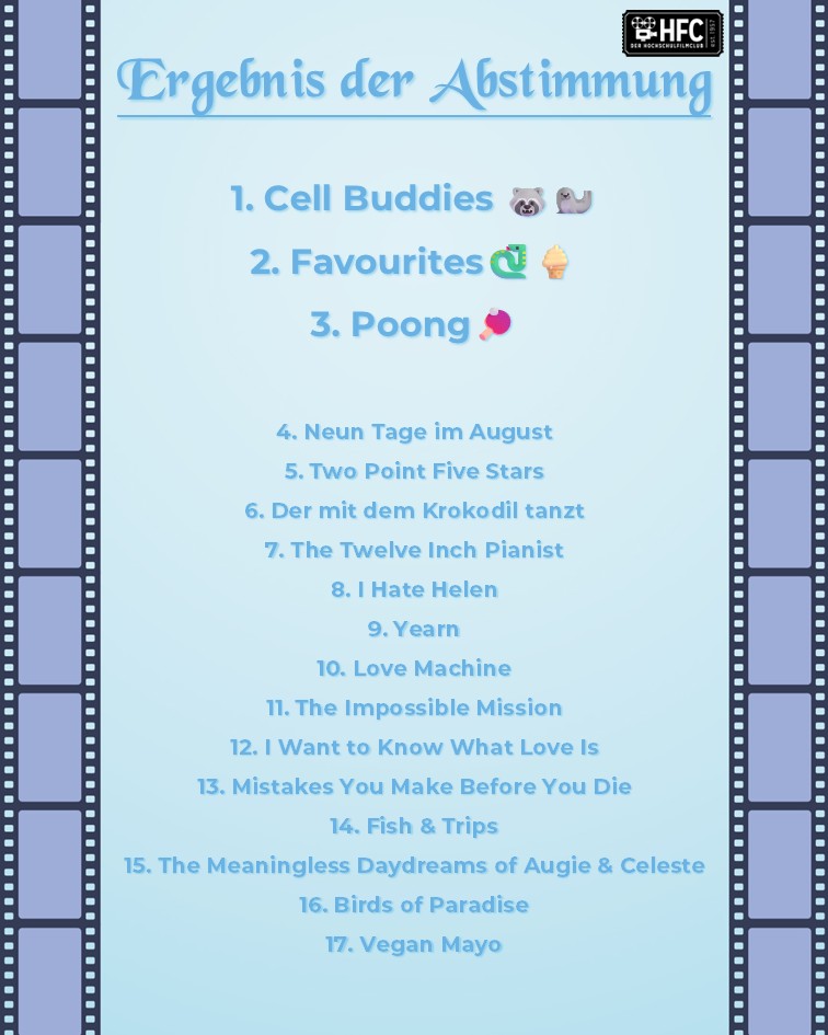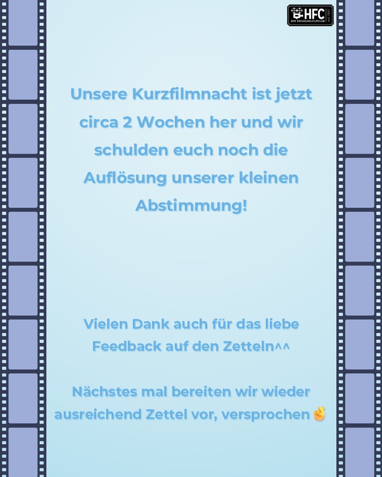 Wir freuen uns darauf, mit Euch das Semester mit der traditionellen Kurzfilmnacht ausklingen zu lassen.